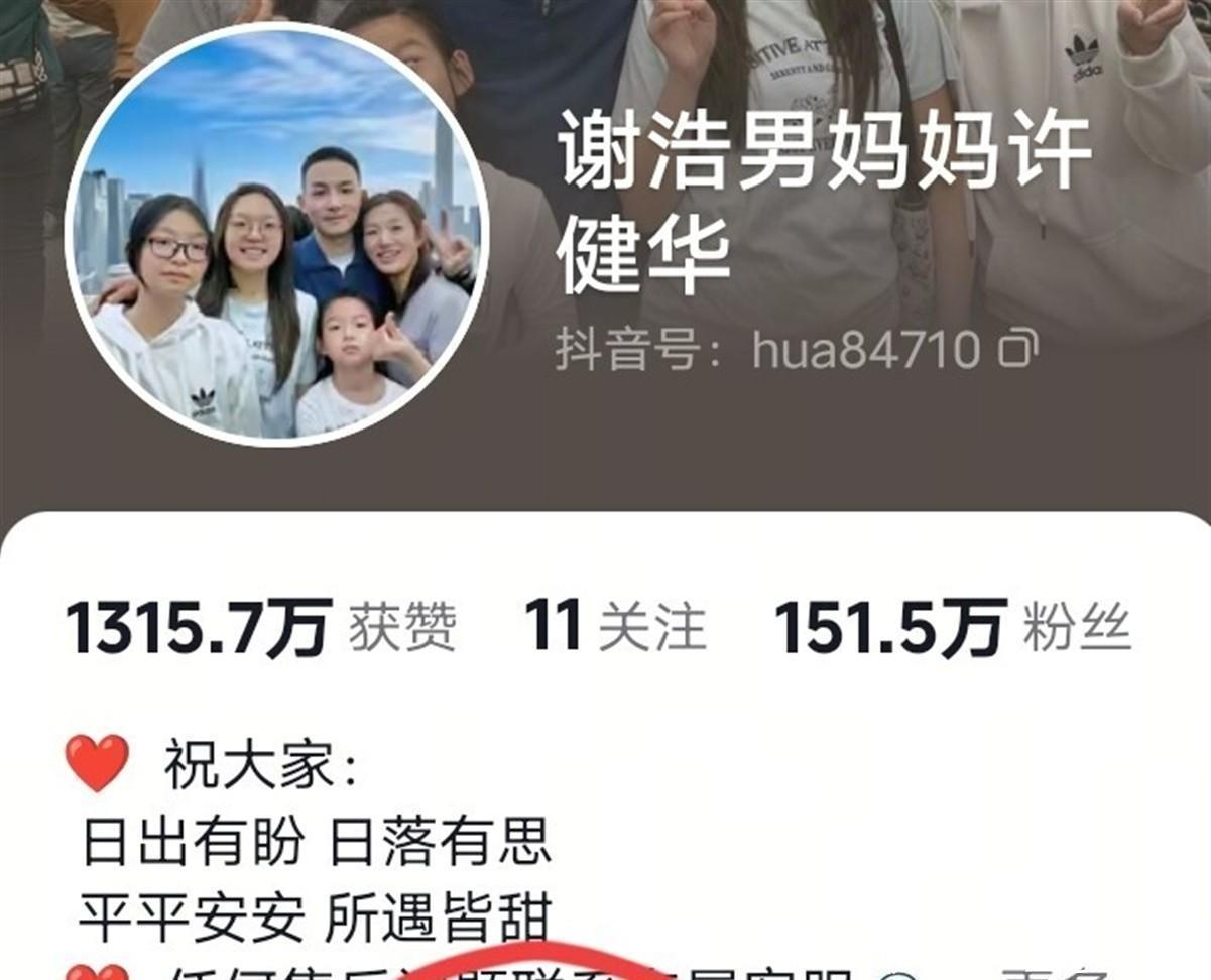 参考资料:抖音用户“许健华”近期发布视频内容、微博话题谢浩男妈妈直播相关讨论亲爱各位读者你们怎么看欢迎在评论区留言讨论!